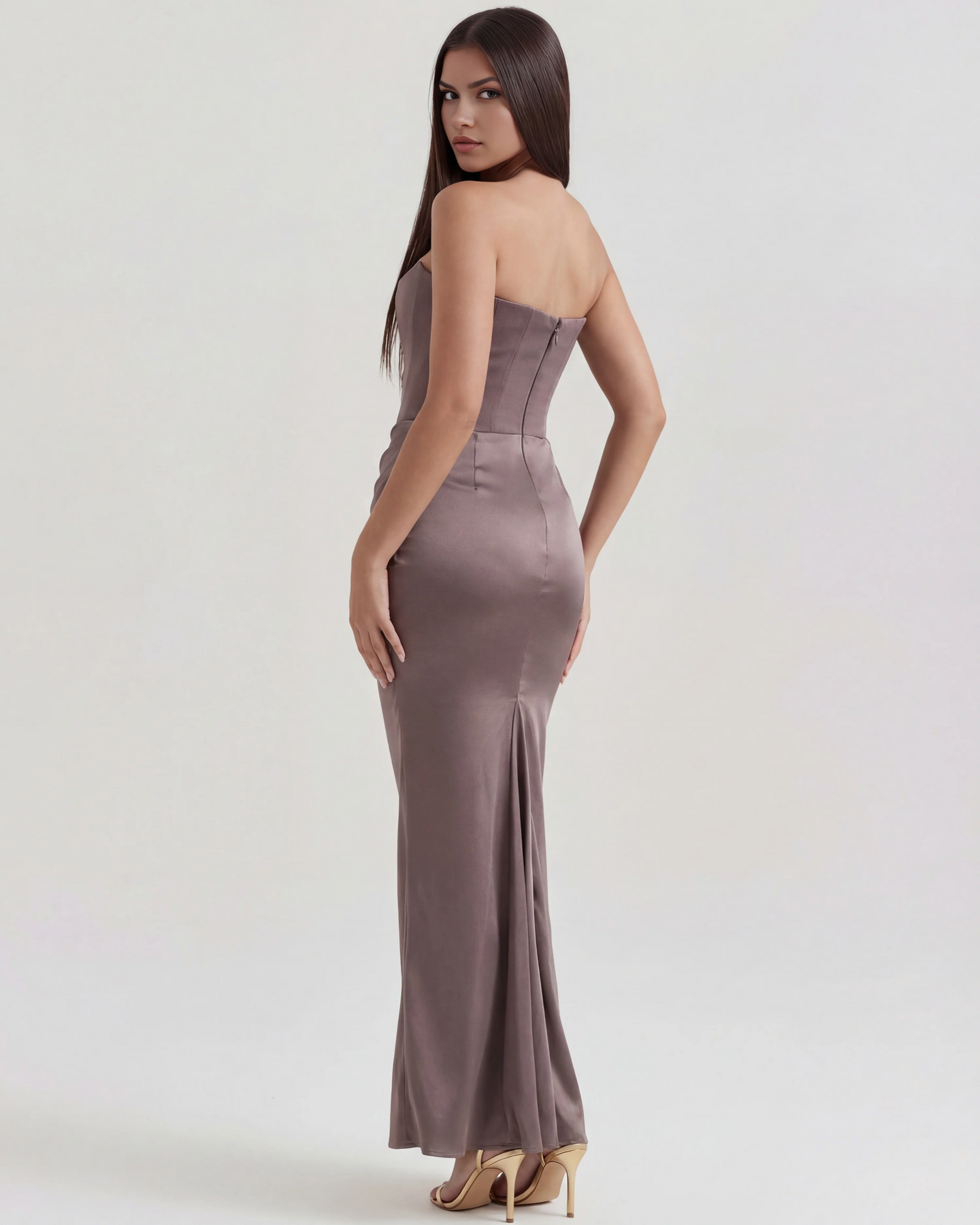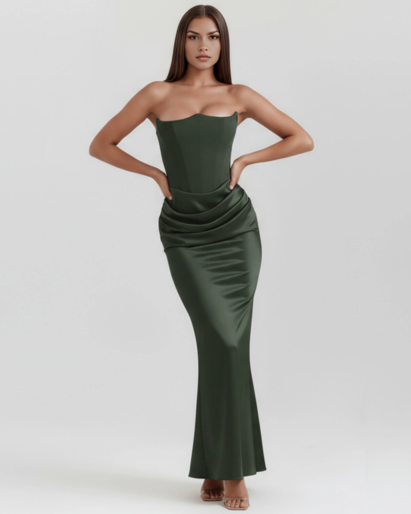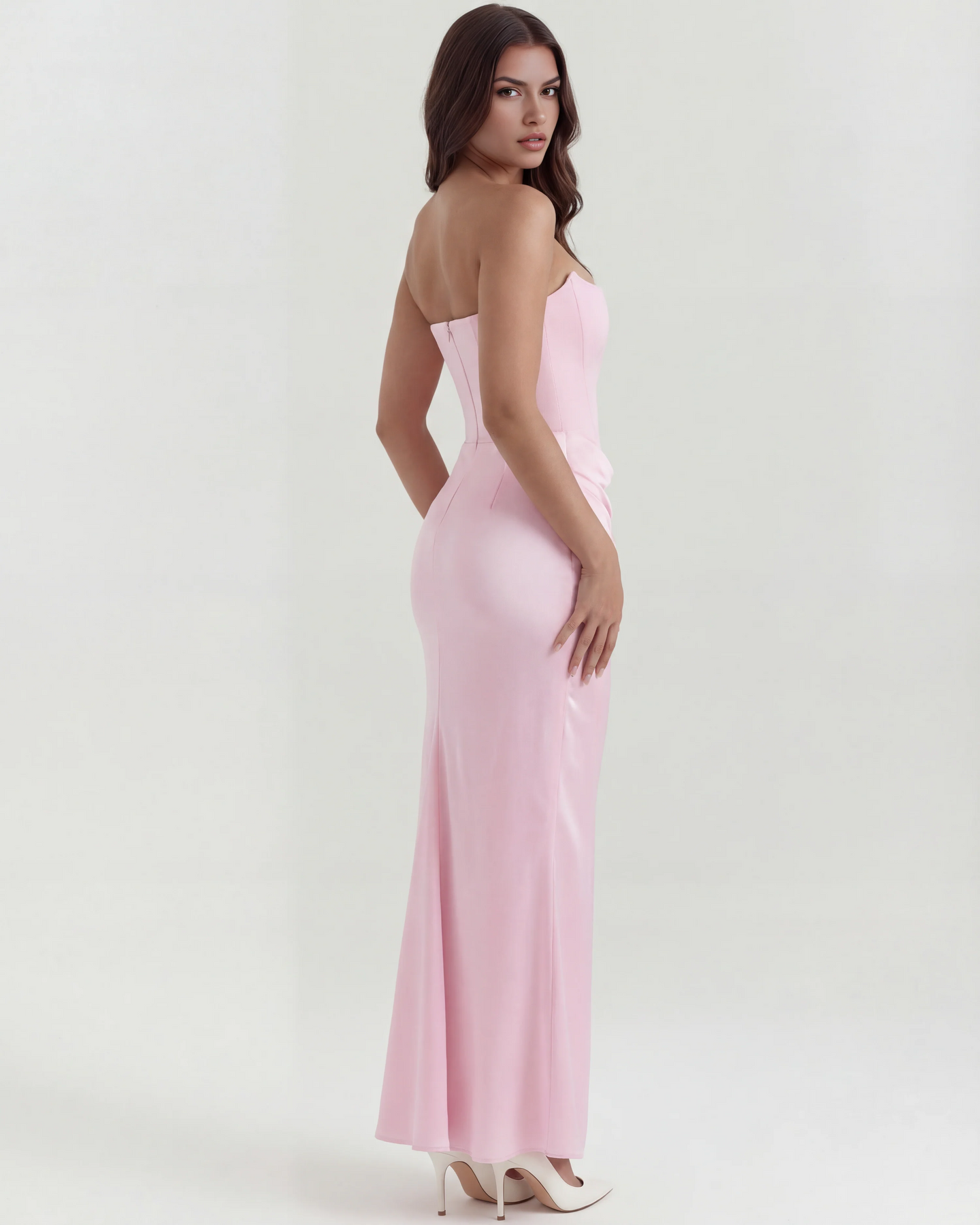 The 'Ariel' is all out, divine feminine glamour, and we make no apologies for it. This staple Almond Muse style showcases our signature corsetry and refined shaping like no other. The boned bodice is crafted from a stretch crepe that lifts and cinches in all the right places. It fastens with an easy zip at the back.